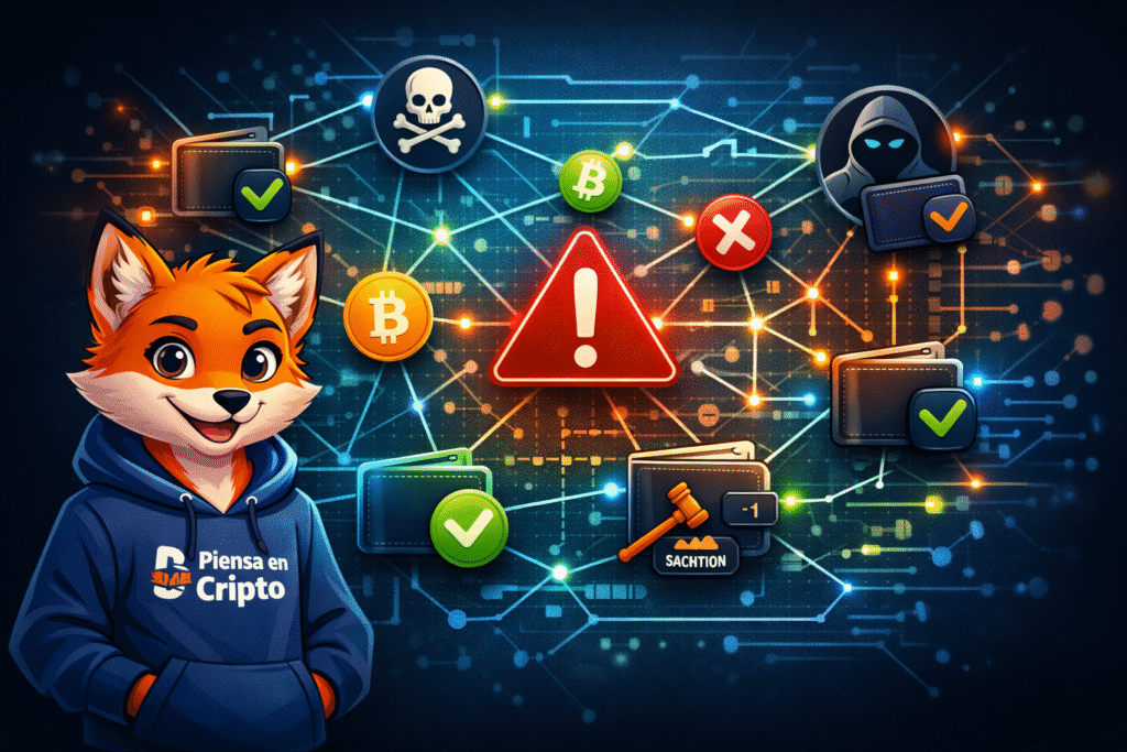 En el caso de sanciones relacionadas con Tornado Cash, muchas wallets que ni siquiera usaron directamente el protocolo acabaron señaladas por haber interactuado indirectamente con fondos que pasaron por él. También ha habido usuarios que recibieron airdrops sin solicitarlos. Al interactuar con esos tokens, su actividad quedó vinculada a contratos de riesgo.