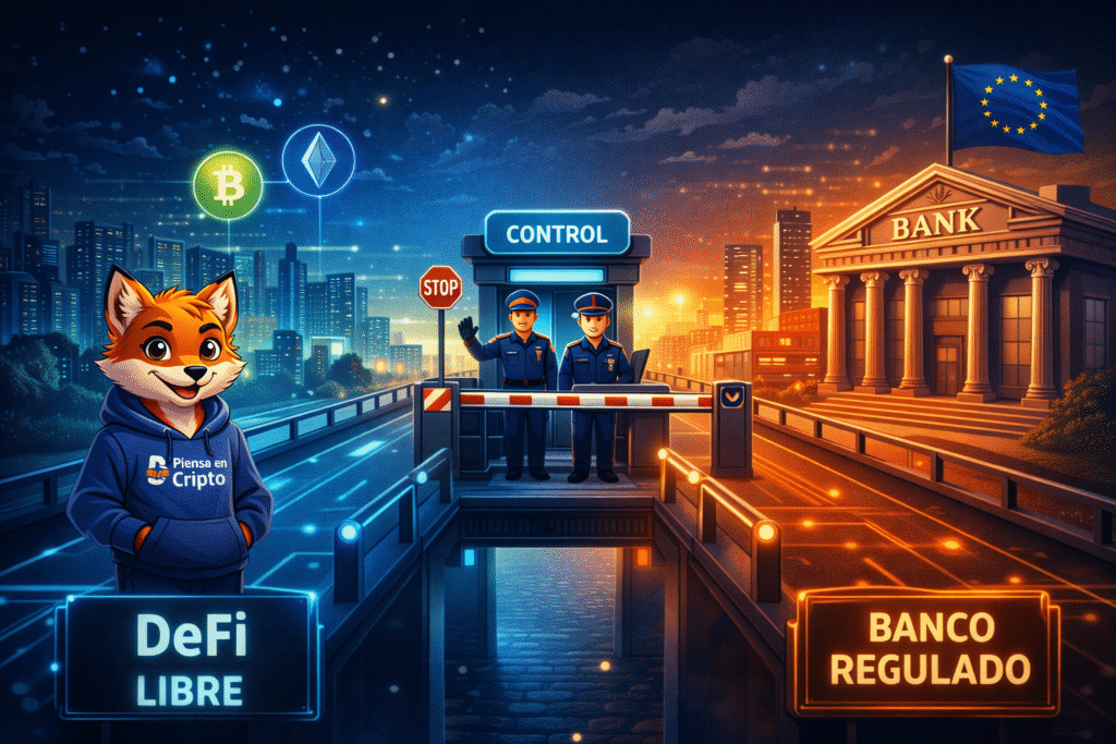 Aquí es donde entra en juego el verdadero punto crítico: el sistema regulado. Mientras te mantienes dentro de DeFi, nadie te bloquea. No hay intermediarios. No hay validación externa. Pero en el momento en que interactúas con: